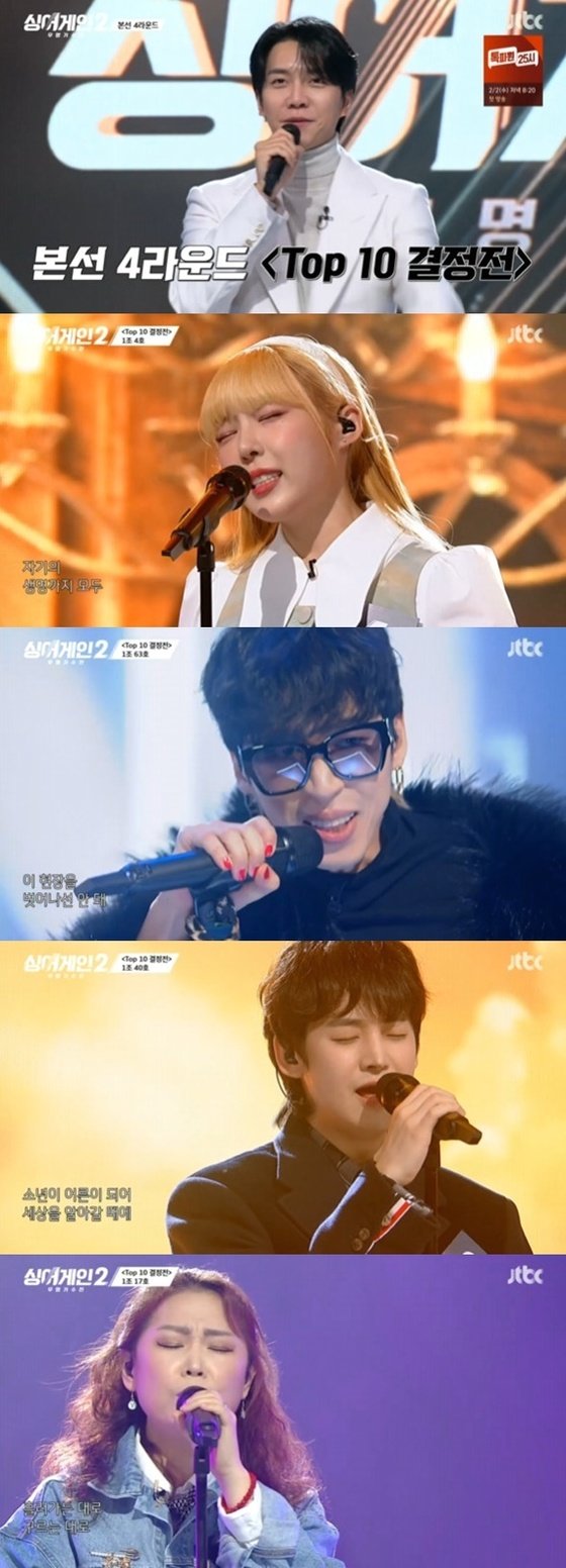 24일 방송된 JTBC 예능 프로그램 '싱어게인2'에서는 4라운드 TOP10 결정전이 펼쳐졌습니다.